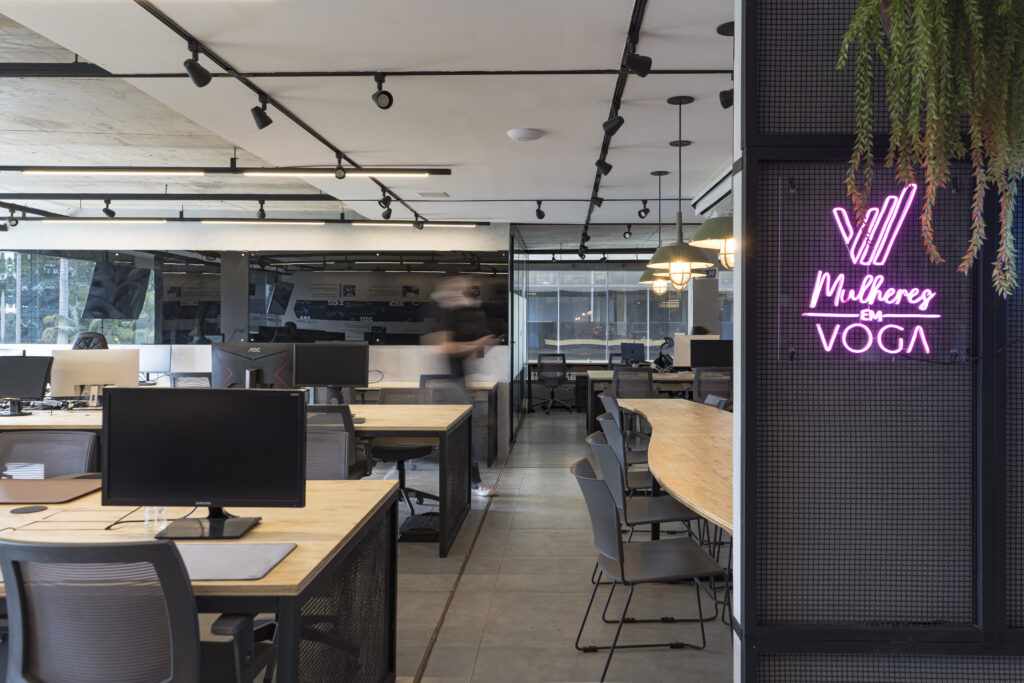 “Trabalhar em um ambiente acolhedor é fundamental para obter um bom rendimento no trabalho, e aqui na Voga tivemos a sorte de contar com o talento da Fogo arquitetura. Com muito carinho e atenção, elas pensaram em cada detalhe desse espaço, tornando-o ainda mais acolhedor e maravilhoso. Somos imensamente gratos a essas profissionais por terem concebido um projeto incrível que encanta a todos que o veem.” (Alice Costa, Grupo Voga)